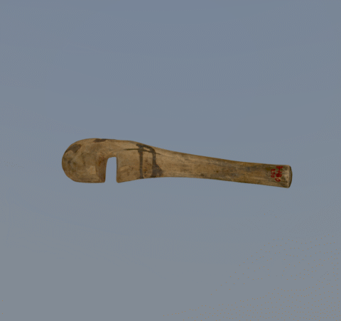 Lapsen ahkio, jonka perälautaan on maalattu koristekuviot.